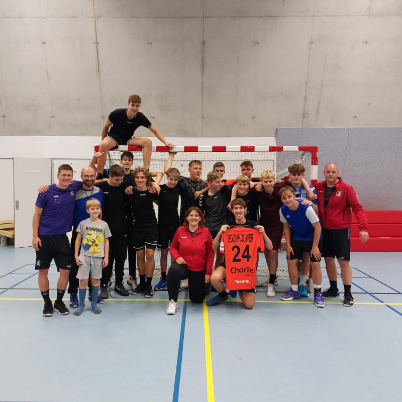 Jeffrey Boomhouwer toevoegen aan ons handbalkamp 'Ready for the Future' was een groot succes. Hij heeft zowel balvaardigheid gedaan, allerlei trucjes, maar ook specifieke oefeningen voor afronden uit de hoek. De deelnemers vonden het geweldig.